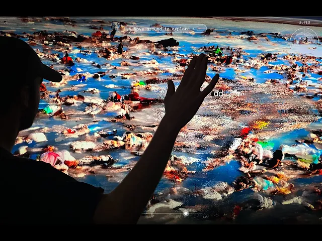 When the installation comes to life, the audience becomes part of the loop. Body tracking captures each gesture as light, depth, and image shift in real time. Every movement alters the AI-generated landscapes, transforming observation into participation. In this space, the body reflects the same cycles of extraction and transformation that sustain artificial intelligence. Data, motion, and meaning constantly feed back into one another.
