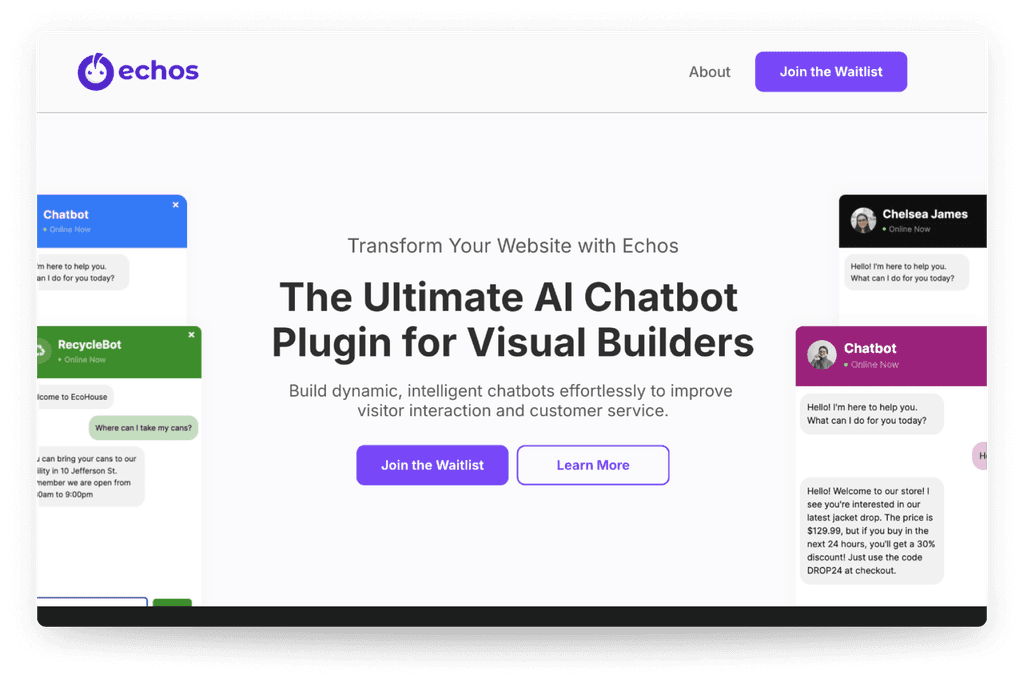 One of the main challenges was translating advanced AI into an experience that feels simple and predictable. We refined prompts, improved error handling, and shaped the assistant’s behavior so it clearly communicates what it knows and what it needs. Future plans include deeper sentiment analysis, real-time alerts, a drag and drop builder, and support for platforms beyond WordPress. The goal is to make powerful AI tools feel natural for anyone, regardless of their experience. See how echos works in this video!