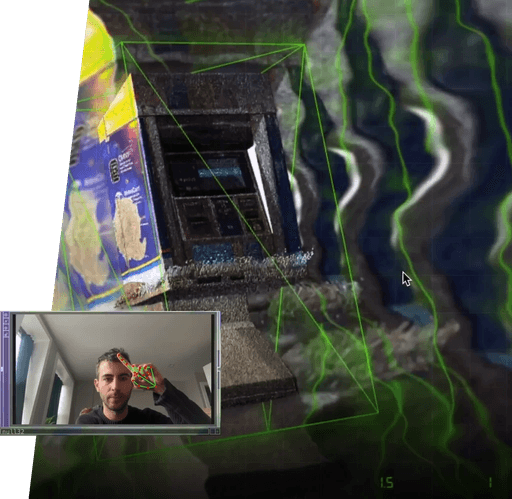 The models were then turned into particle systems. Gesture controls and MIDI mapping allowed for the artwork to be performed in real time.